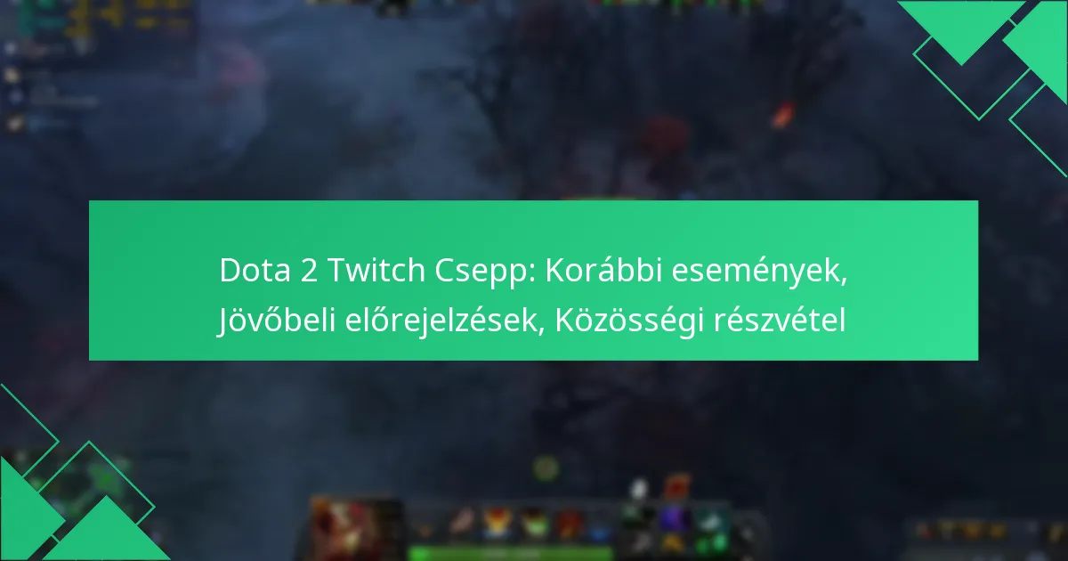 A Dota 2 Twitch Drops izgalmas játékon belüli jutalmak, amelyeket a játékosok a Dota 2 kijelölt streamjeinek Twitch-en való nézésével szerezhetnek meg, fokozva a nézői elköteleződést a live események során. A korábbi események sikeresen támogatták a közösségi részvételt, exkluzív tárgyakat kínálva a nagy tornákhoz kapcsolódóan, míg a jövőbeli dropsok várhatóan tovább fejlődnek, figyelembe véve a játékosok visszajelzéseit, hogy még inkább testreszabott élményeket nyújtsanak.